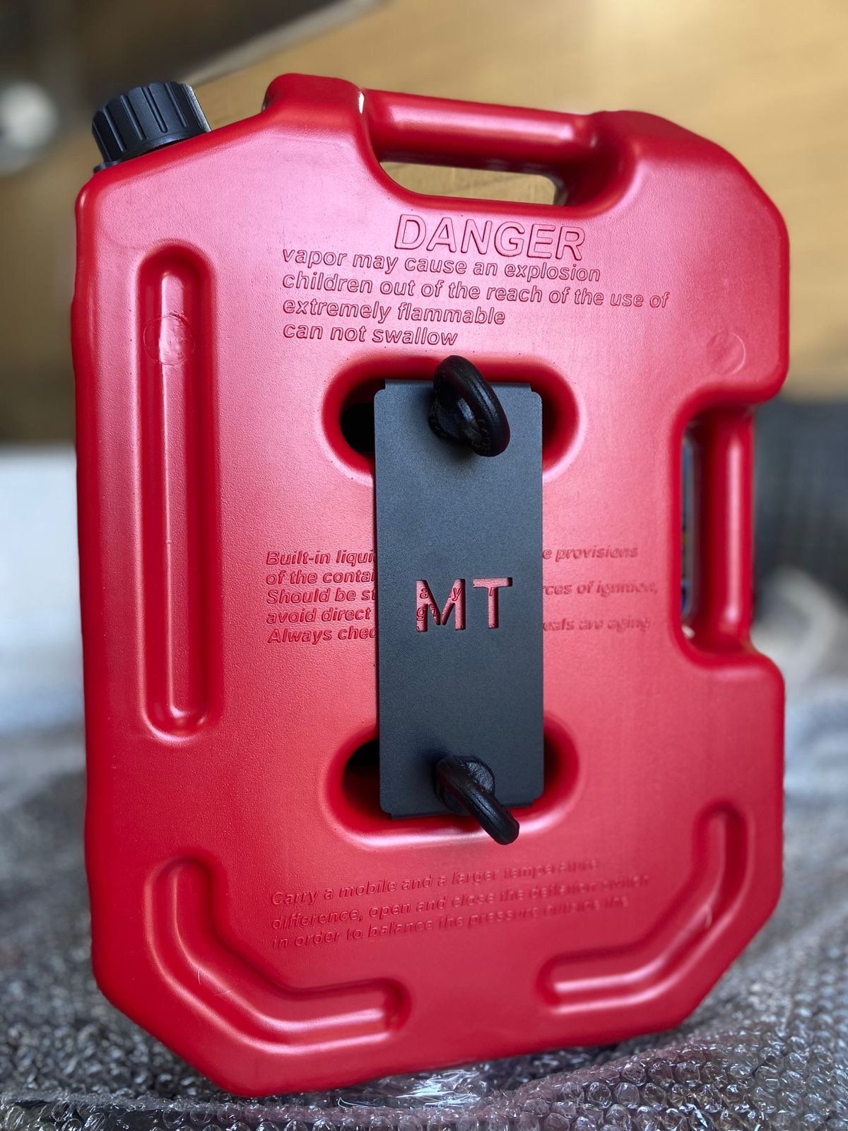 يرفق حلقتين قفل مع صاجة تثبيت عليها شعار MT لجراكل البنزين سعة ١٠ لتر