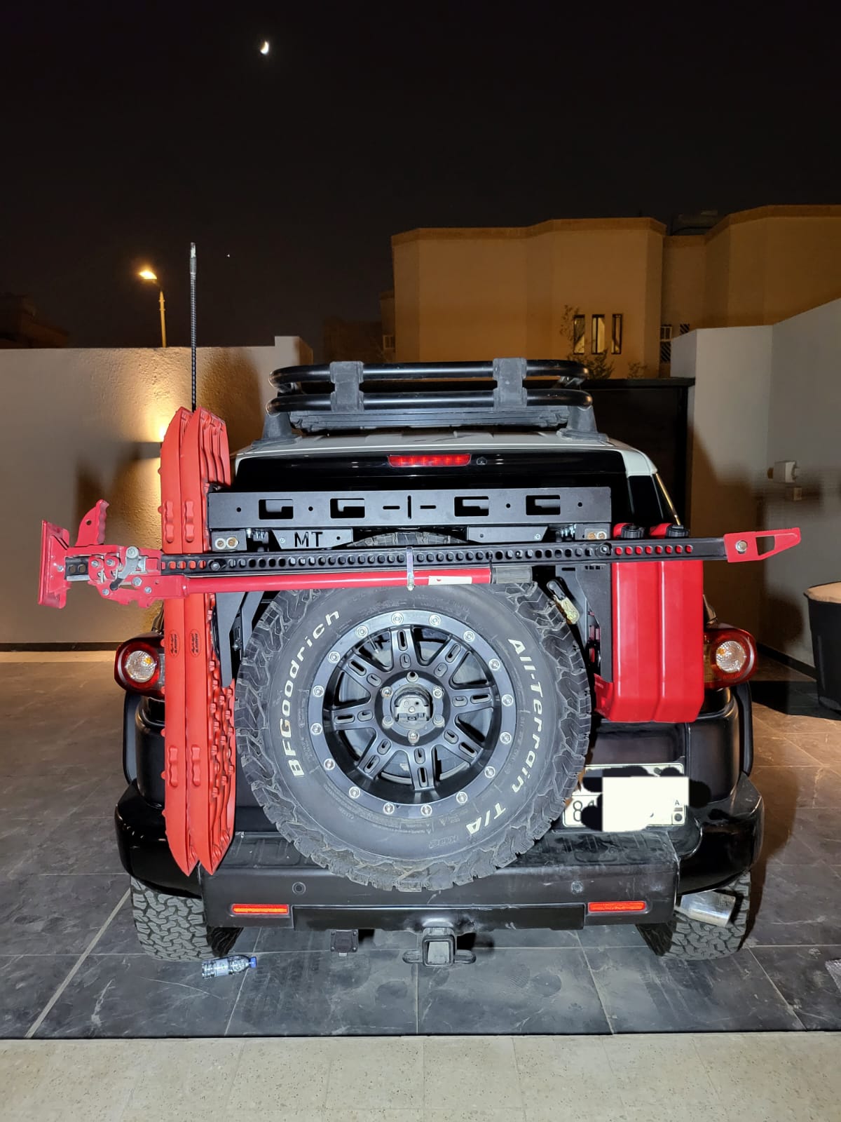 The Tire Shelf by MT represents one of the best storage solutions for travelers, as it provides the required space outside the car to carry basic travel supplies and facilitate easy access to them, such as shovels, water jugs, gasoline jerry cans, and unwanted travel supplies inside the car, such as firewood, charcoal, and others using.