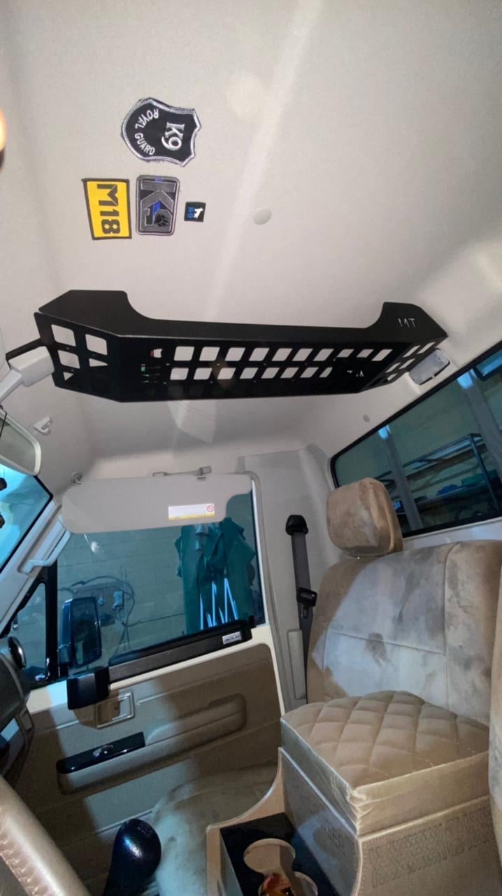 تم تصميم هذا المنتج لتوفير مساحة التخزين المثالية داخل السيارة و استغلال السقف بين مقعدي الراكب و السائق بذكاء للتنظيم و تسهيل الوصوف للاغراض بشكل اسرع. يمكن استخدام مولي السقف ك رف داخلي بالاضافة الى الاستفادة من نظام الMOLLE لتعليق المنظمات و الحقائب او الكشافات و ادوات الرحلات مثل الجهاز اللاسلكي و غيره . تم ثني اطراف المنتج لمنع الاغراض من السقوط في البر او الطرق الوعرة.
